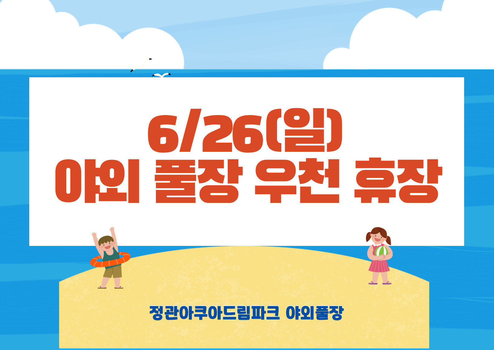 정관아쿠아드림파크 야외 풀장 6/26(일) 우천 휴장 알림 부서 - 등록일자 2022년 6월 25일 16시 38분 9초 조회 555 6/26(일) 야외 풀장 우천 예보로 인하여 휴장합니다. ※2022.06.25. 16:30 WINDY.COM 예보 기준 6월26일 우천휴장공지.jpg [ Size : 222.26KB , Down : 191 ] 미리보기 다운로드 목록보기
