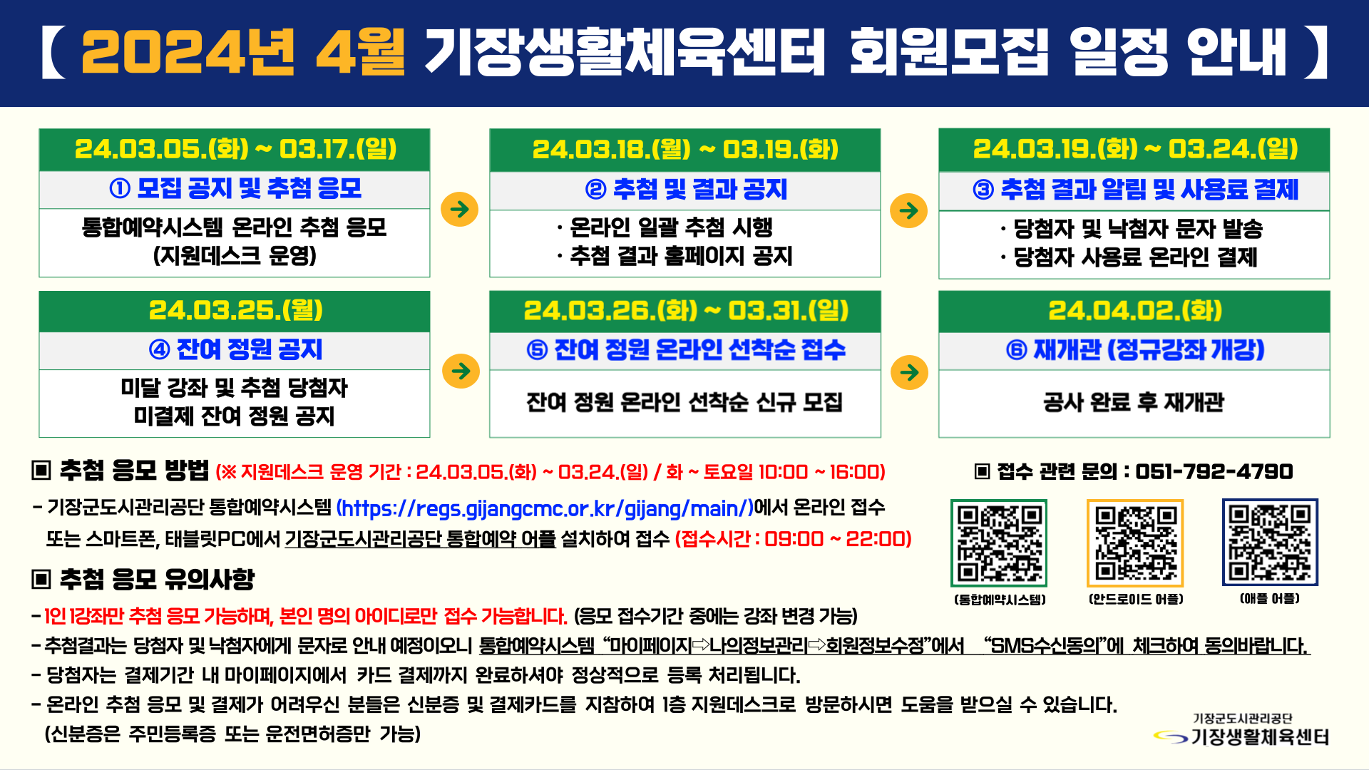 기장생활체육센터 2024년 4월 재개관 운영 안내
